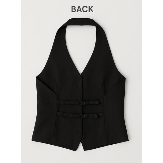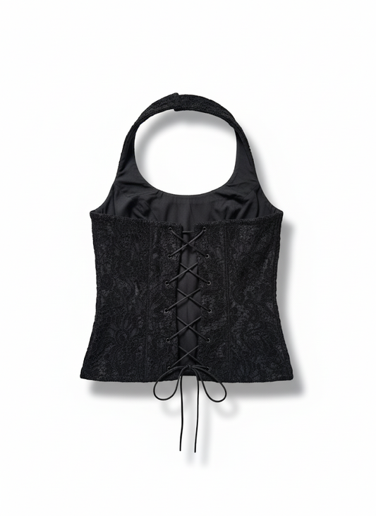 BLACK VELVET SELF-DESIGN HALTER CORSET