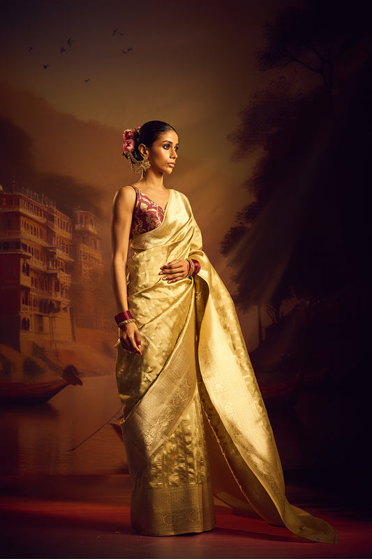 PURE BANARASI CRUSHED TISSUE SILK SAREE