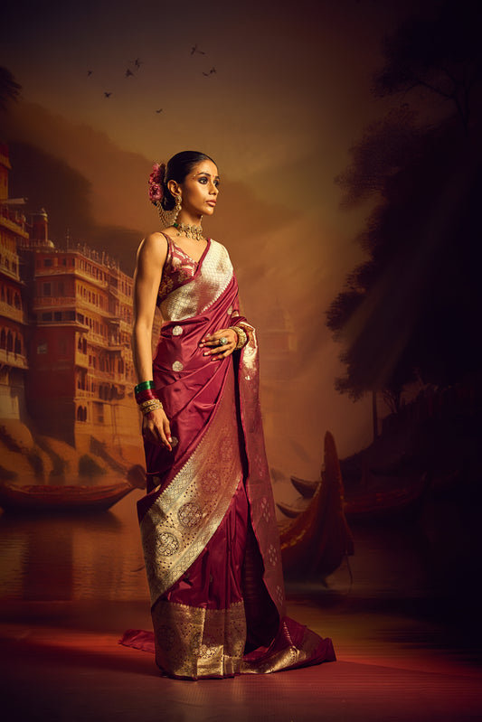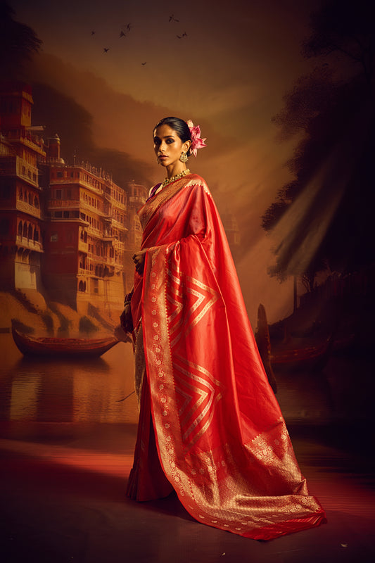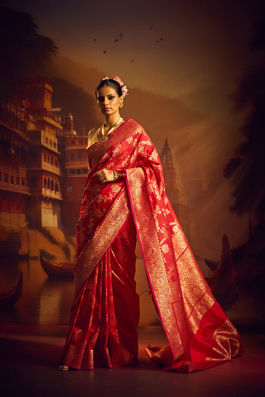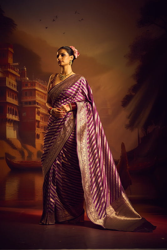 Sold outRED SONA RUPA VERTICAL STRIPE SAREE