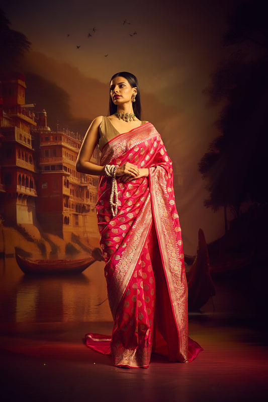 PINK MASHRU KATAN SILK TANCHUI SAREE