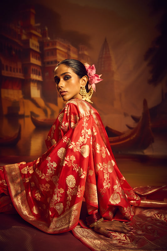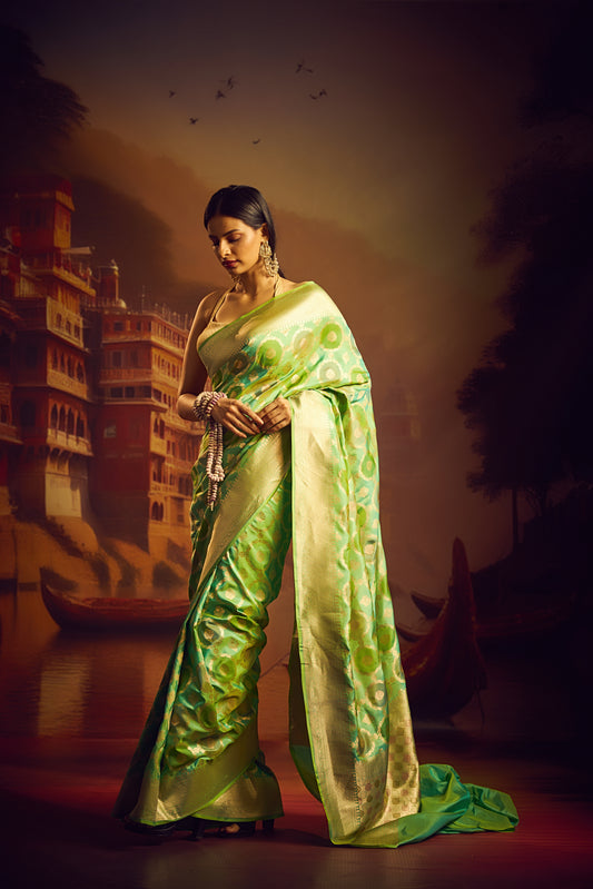 PURE MOONGA SILK SAREE WITH GOLD ZARI DETAILING