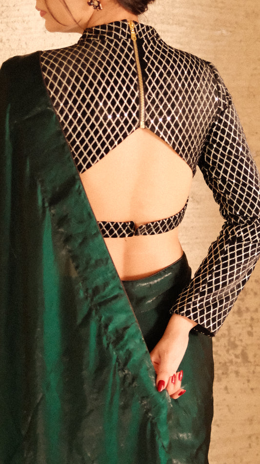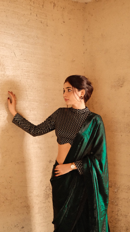 METTALIC EMERLAD TISSUE SAREE WITH BLOUSE